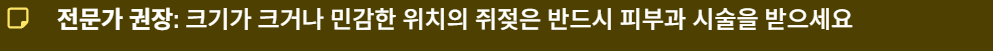 ⚠ 집에서 제거는 위험 가능성이 있어, 크기가 크거나 민감한 위치는 반드시 전문가 시술 권장