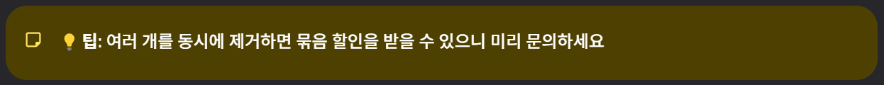 - 여러 개 동시 제거: 3만 ~ 10만 원대