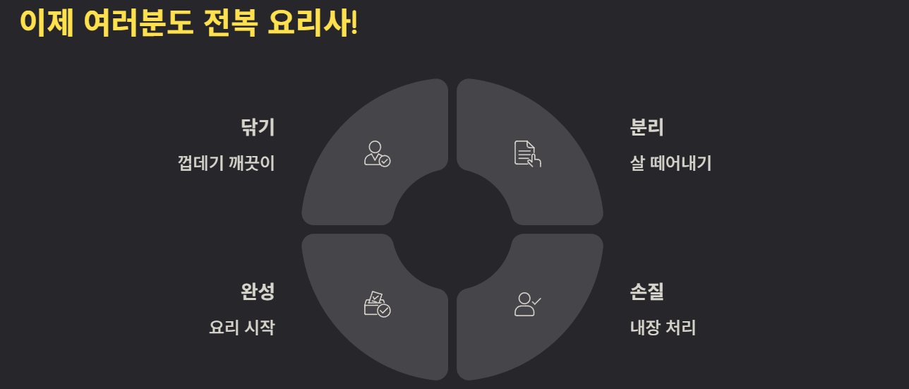 신선도 유지가 포인트이므로 가능한 빠르게 조리하는 것이 가장 좋습니다.