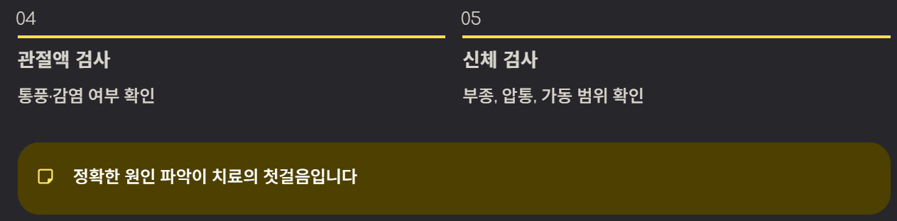 - 관절액 검사 : 통풍·감염 여부 확인