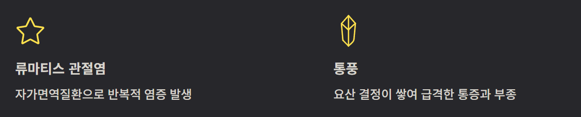 요산 결정이 관절에 쌓여 염증을 유발하면 갑작스럽게 붓고 통증이 발생합니다.