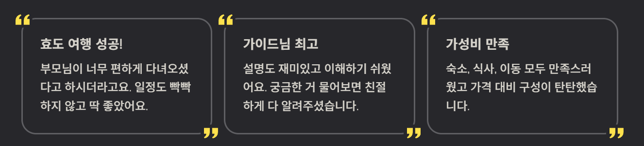 - “부모님 효도 여행으로 좋았다.”