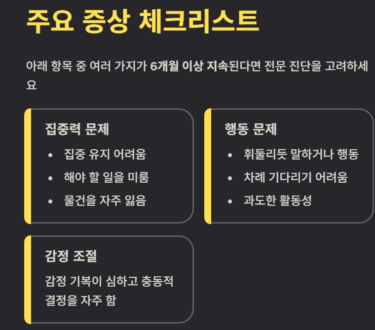 ✔ 결론 ADHD는 조기 파악과 관리가 핵심