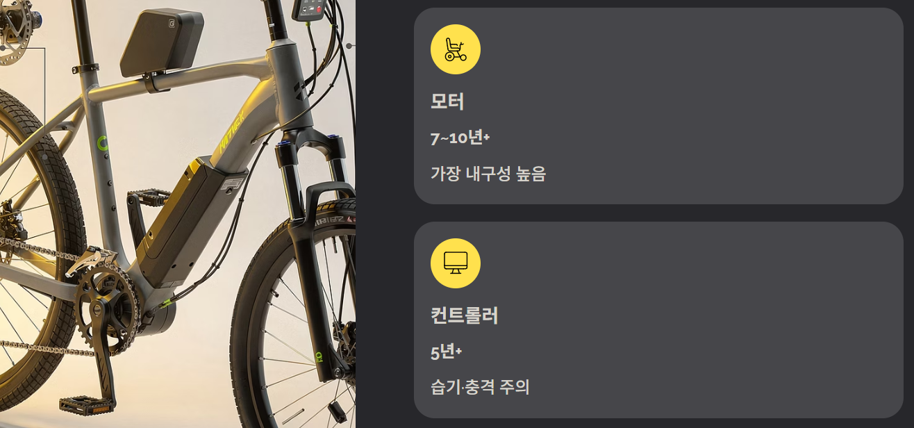 전기자전거의 전자부품은 생각보다 내구성이 좋아 5년 이상 충분히 사용할 수 있습니다.