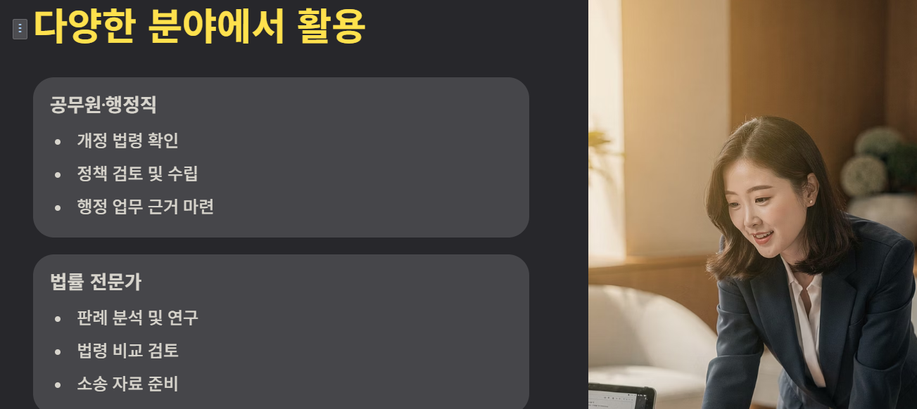국가법령정보센터는 다양한 분야에서 활용됩니다.