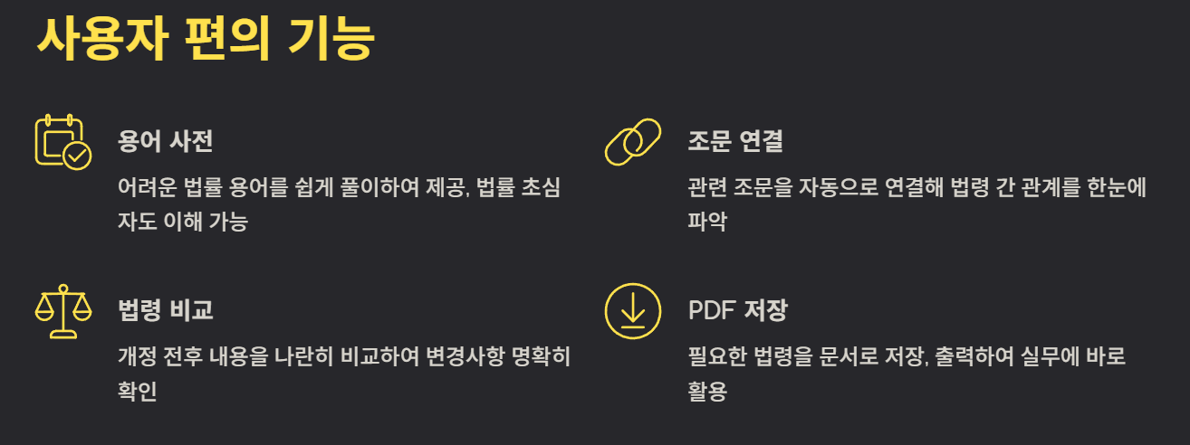 - 법령 간 비교 기능: 개정 전·후 내용 비교 가능