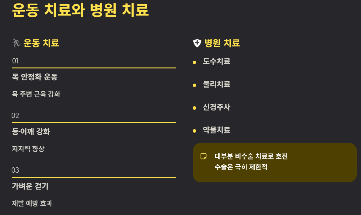 목디스크는 단순한 피로라고 넘기기 쉬우나, 방치하면 손 저림·두통·근력 저하 등 일상생활에 큰 지장을 줄 수 있습니다. 하지만 초기 증상만 잘 파악하고, 생활습관과 스트레칭을 꾸준히 하면 대부분 자연 호전 가능합니다. 목뼈에 부담을 주는 습관을 개선하고, 통증이 지속될 때는 전문의 상담을 받는 것이 가장 확실한 방법입니다.