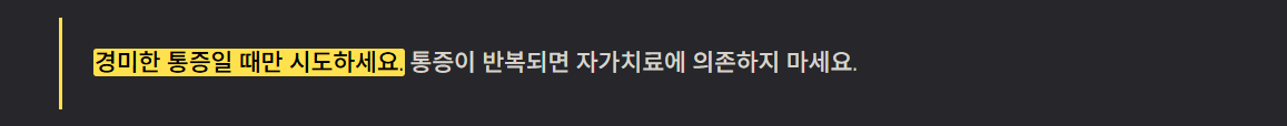 단, 통증이 반복된다면 자가치료에 의존하지 않는 것이 중요합니다.