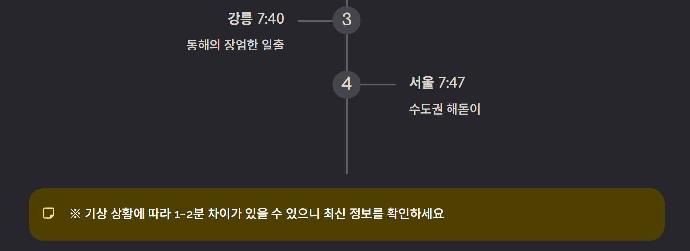 주요 지역 1월 1일 일출시간 예시