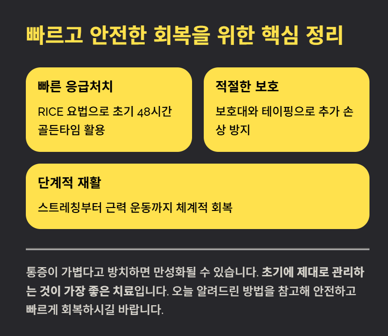 발목 인대 늘어났을 때 치료방법의 핵심은 빠른 응급처치, 적절한 보호, 그리고 단계적인 운동 재활입니다. 통증이 가볍다고 방치하면 만성화될 수 있으니 초기에 제대로 관리하는 것이 가장 좋은 치료입니다. 오늘 알려드린 방법을 참고해 안전하고 빠르게 회복하시길 바랍니다.