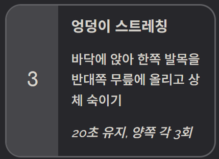 엉덩이 근육과 허벅지 뒤쪽을 이완시키는 스트레칭이 효과적입니다. 누운 상태에서 한쪽 무릎을 가슴 쪽으로 당기거나, 의자에 앉아 다리를 교차해 상체를 숙이는 동작은 좌골신경 압박 완화에 도움을 줍니다.