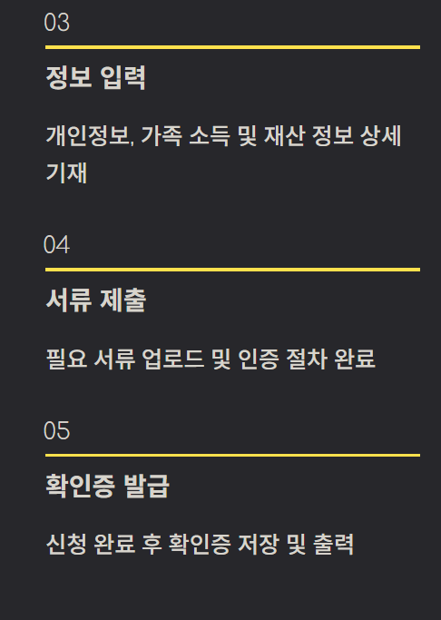 - 신청 전 서류 미리 준비: 가족 소득증명서, 주민등록등본 등