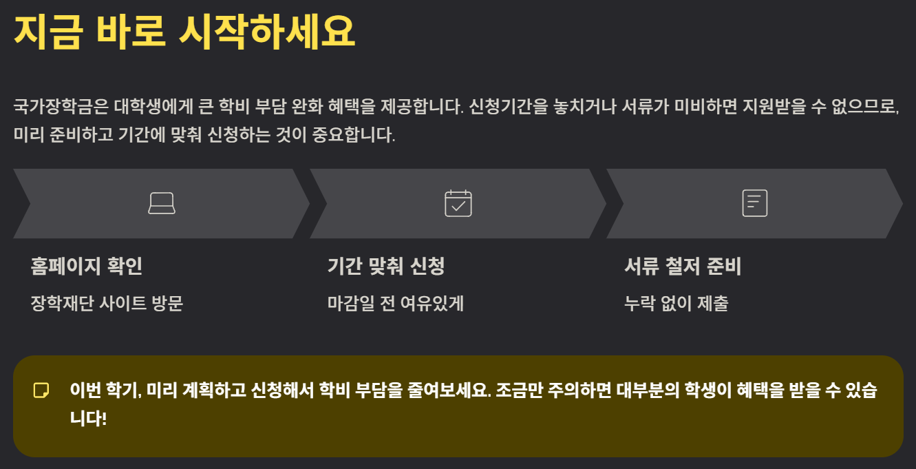- 유의사항: 기간 엄수, 서류 누락 주의, 성적 기준 충족