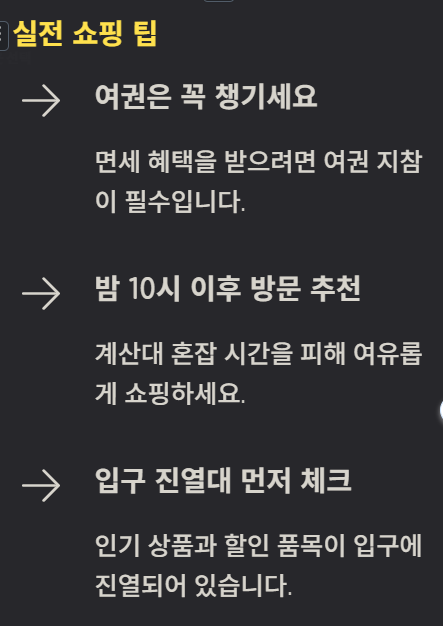 - 여권 지참 시 면세 가능