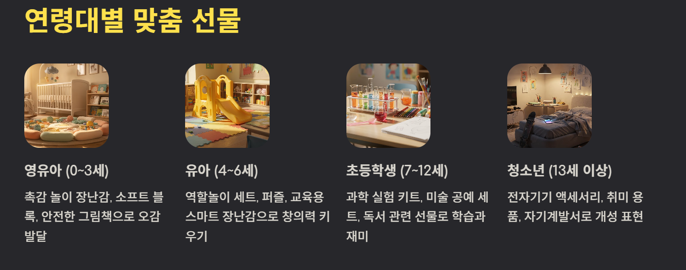 1. 연령대별 선물 가이드