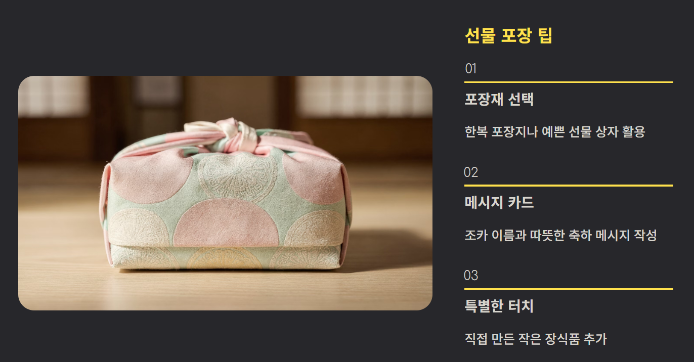 - 직접 만든 작은 장식품을 함께 넣으면 더 특별합니다.