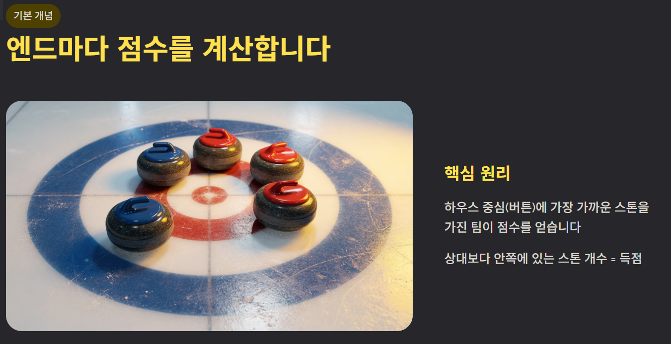 컬링 점수계산법은 ‘가장 중심에 가까운 스톤 수’라는 단순 원칙에서 시작하지만, 전략과 전술이 결합되면서 깊이 있는 스포츠로 완성됩니다. 점수 기준만 이해해도 경기 흐름을 읽는 능력이 크게 향상됩니다. 컬링을 처음 접한다면 엔드 개념, 하우스 위치, 후공 전략 세 가지만 먼저 익히는 것이 가장 효과적인 방법입니다.