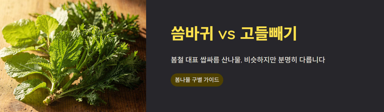 씀바귀와 고들빼기 차이점은 봄철 산나물을 즐기는 사람이라면 한 번쯤 궁금해하는 주제입니다. 두 식물 모두 쌉싸름한 맛이 특징이며, 겉모습도 비슷해 헷갈리기 쉽습니다. 하지만 생김새, 맛, 활용법에서는 분명한 차이가 존재합니다. 이번 글에서는 씀바귀와 고들빼기 차이점을 중심으로 특징, 구별법, 효능, 요리 활용 방법까지자세히 정리해보겠습니다.