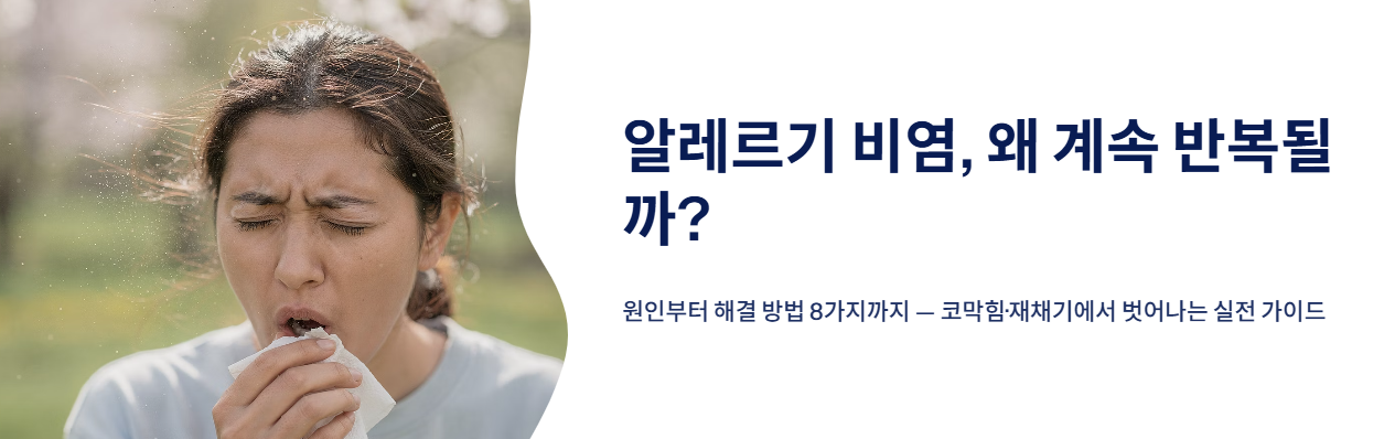 알레르기 비염은 방치할수록 만성화되기 쉽습니다. 오늘부터 작은 습관 하나씩 바꾸면, 답답한 코막힘과 재채기에서 훨씬 편안해질 수 있습니다.