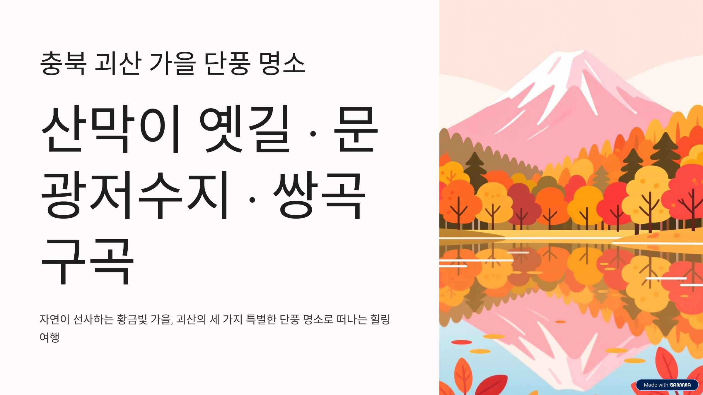오늘은 여러분의 가을 여행 계획을 완벽하게 만들어 줄 괴산 단풍 명소 3곳을 엄선하여 추천해 드립니다!