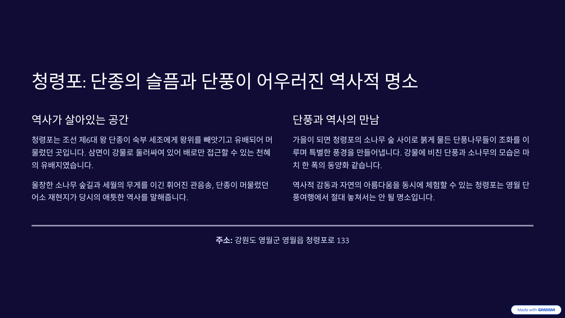 이 글이 여러분의 영월 가을 여행에 도움이 되셨기를 바라며, 즐거운 단풍놀이 되세요!