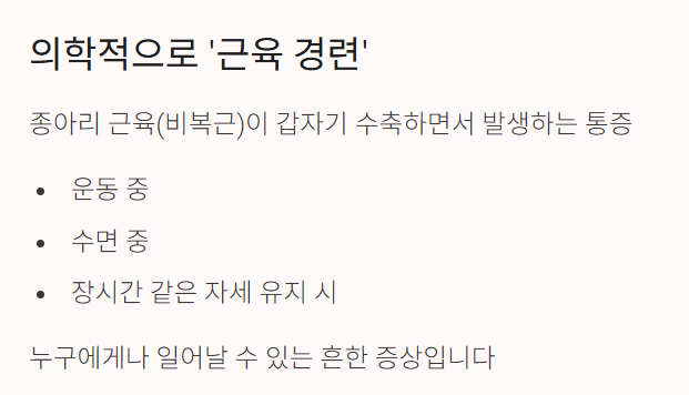 ✅ (1) 수면 중 또는 휴식 중 쥐가 났을 때