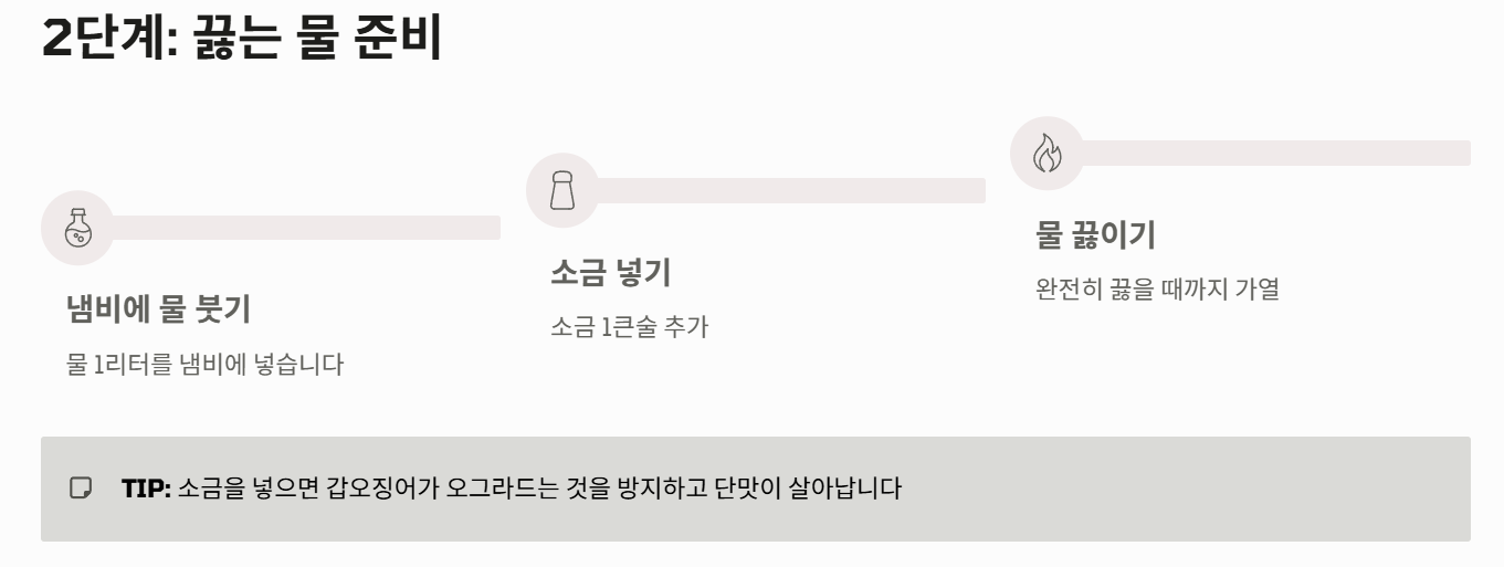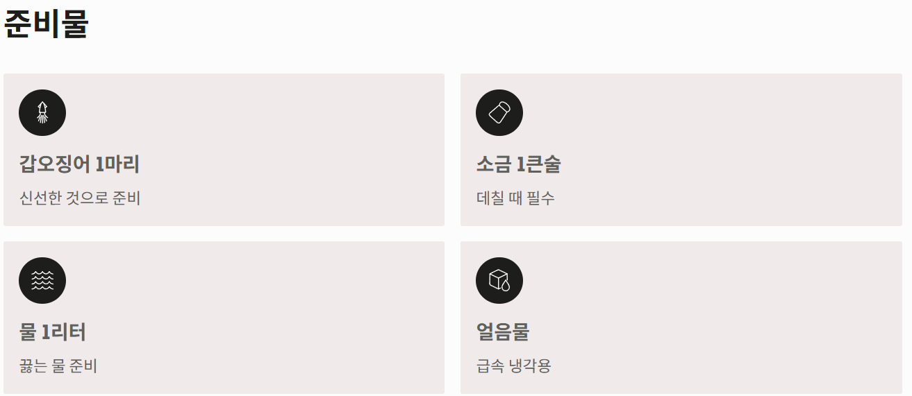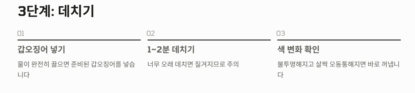TIP: 데칠 때 소금을 넣으면 갑오징어가 오그라드는 것을 방지하고, 단맛이 살아납니다.