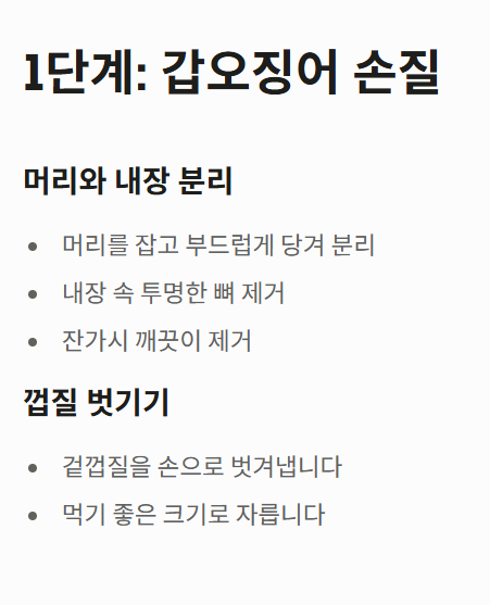 - 손질 난이도: 내장과 껍질 제거만 잘하면 누구나 손쉽게 조리 가능.