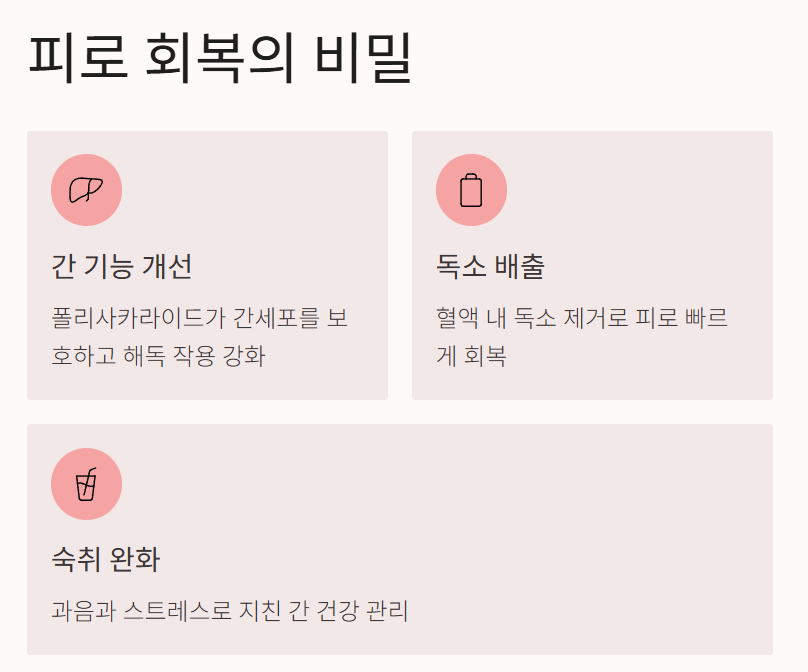 | 간 건강 개선 | 숙취 줄고 피로감 완화 |
