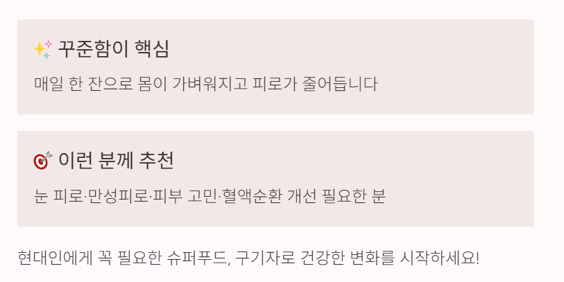 💬 “피곤해서 오후마다 졸렸는데 구기자즙을 2주 정도 먹고 나니