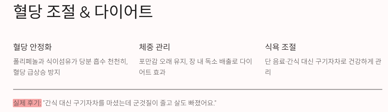 💬 “피부가 푸석했는데 구기자차를 꾸준히 마시니 얼굴 톤이 밝아졌어요.”