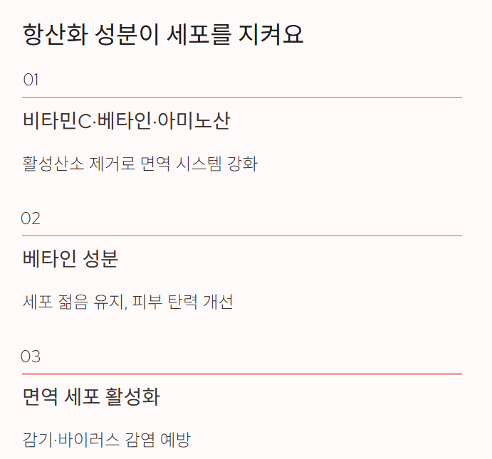 면역 시스템을 강화하고 피부 노화를 예방합니다.