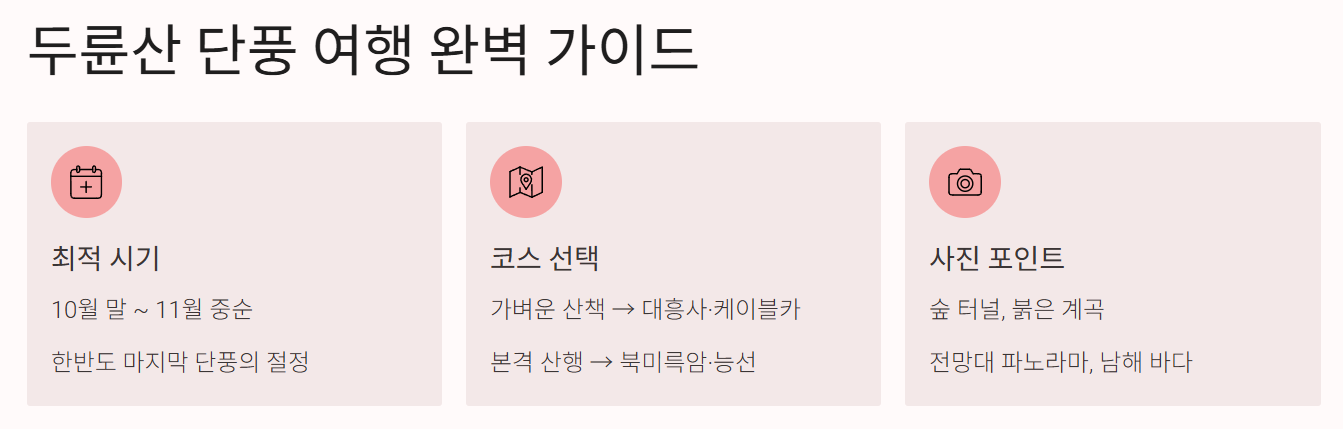 - 주말이나 단풍 절정기엔 주차나 인파가 많을 수 있어, 평일이나 이른 시간 방문을 고려해보세요.