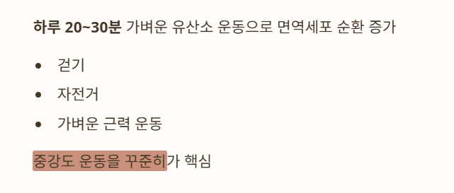 단, 과한 운동은 오히려 면역력을 떨어뜨릴 수 있어 중강도 운동을 꾸준히가 핵심입니다.