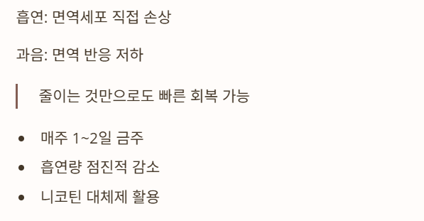 흡연은 면역세포를 직접적으로 손상시키고, 과음은 면역 반응을 저하합니다.