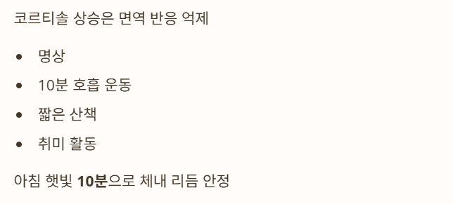- 추천 방법: 명상, 10분 호흡 운동, 짧은 산책, 취미 활동.
