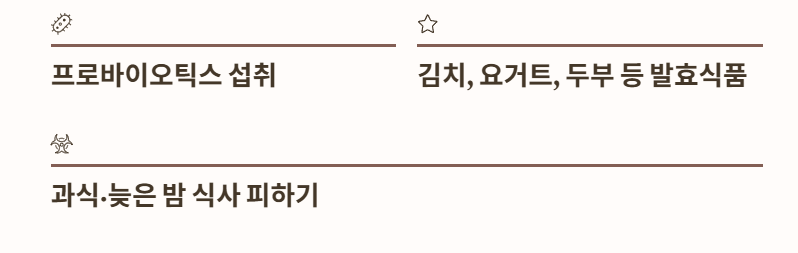 - 과식·늦은 밤 식습관은 장 기능을 저하시켜 주의 필요