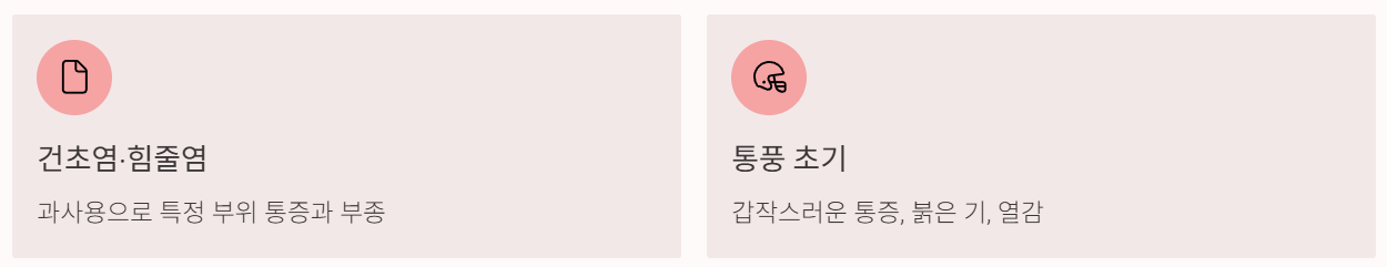 - 통풍이 의심되는 갑작스러운 극심한 통증