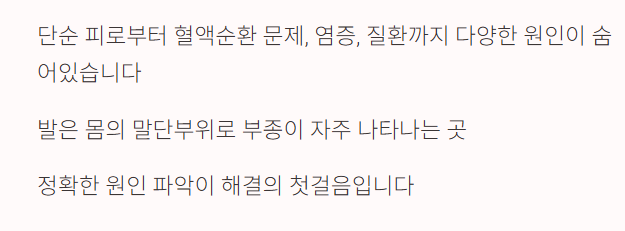 하지정맥류 초기거나 혈액순환이 원활하지 않을 때 발등이 뻐근하게 붓는 경우가 많습니다.