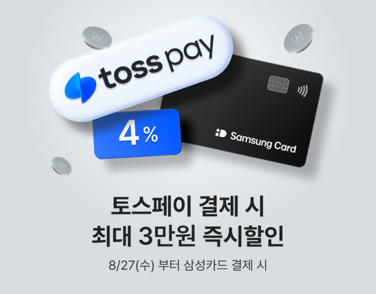 어제 부터 진행하고 있는 네이버 페이, 토스페이로 결제시 3만원 할인혜택을 주니까요 각각 할인되는 카드를 잘 확인하셔서